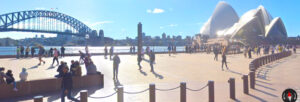 A walkway over the roundabout could function as a gathering space (possibly designed like a tree or tree canopy) and provide access to the iconic background to promote Sydney’s/ Australia’s involvement in protest action.